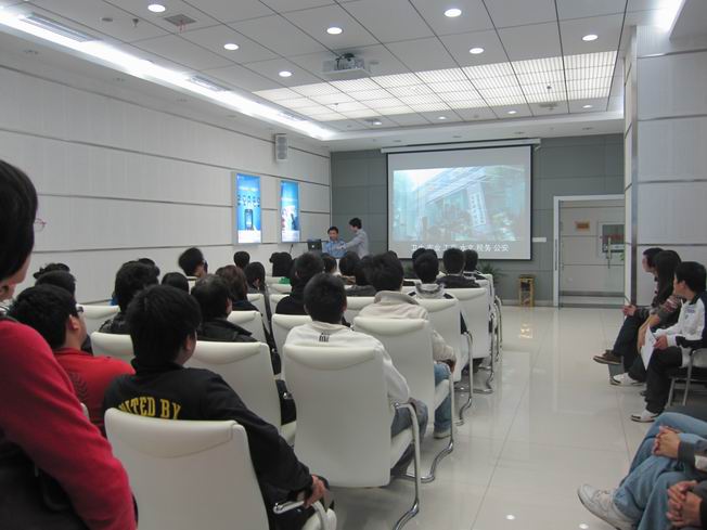 在湖南移动有限公司长沙市分公司会议中心,同学们一起观看了现代移动技术视频短片,了解现代移动通信技术的发展史、应用领域和发展方向。大家还到公司的客户体验厅切身体验信息化行政办公、智能家庭、移动手机电子支付、手机二维码、信息化教育等新技术。