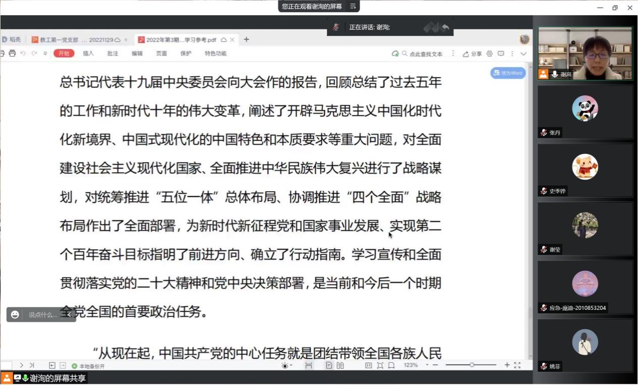 2022年11月30日下午,太阳成集团tyc122cc教工第一党支部联合应急管理学院直属党支部以线上方式开展教职工政治理论学习活动,两个支部全体党员群众参加,活动由教工第一党支部书记谢洵同志主持。