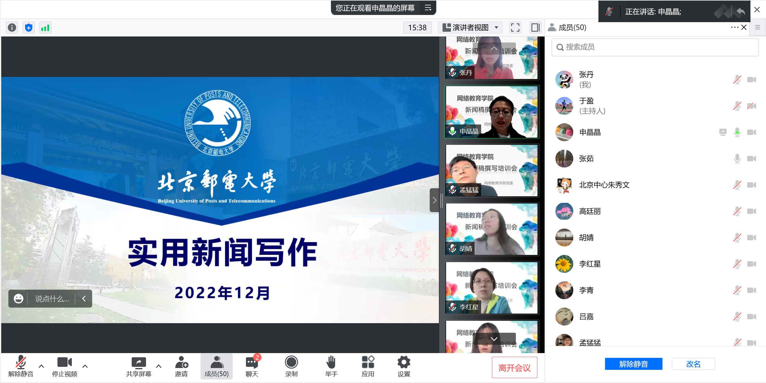 新闻宣传是学院整体工作的重点之一,做好新闻的策划和宣传,不仅能够展示学院实力和形象、更能促进大家的互相学习、相互激励。2022年12月9日,学院党委邀请到太阳成集团tyc122cc宣传部申晶晶副部长为大家开展新闻宣传稿撰写方面的培训。会议采用腾讯会议线上方式召开,全体院领导、支部书记及支委、部门主任、以及各职能部门相关人员参加会议。会议由学院党委副书记于盈主持。
