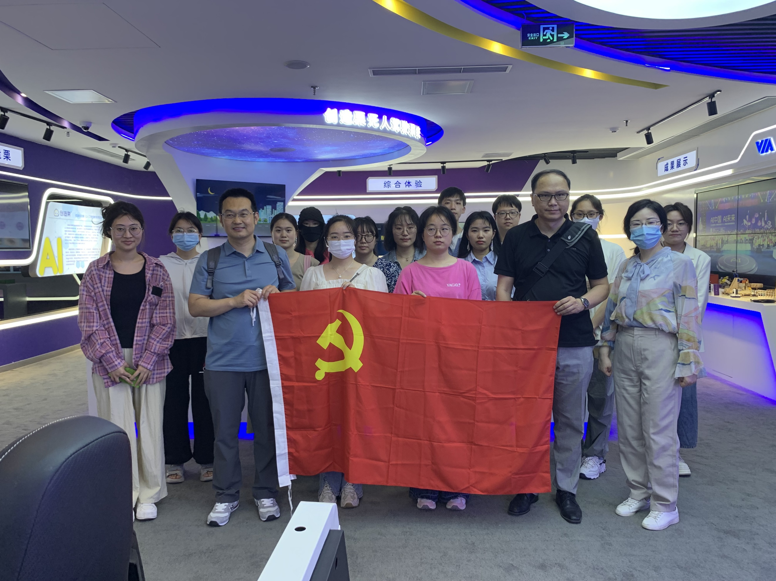 支部师生党员集体前往校外威盛大厦参观人工智能教育解决方案并进行体验学习与交流。