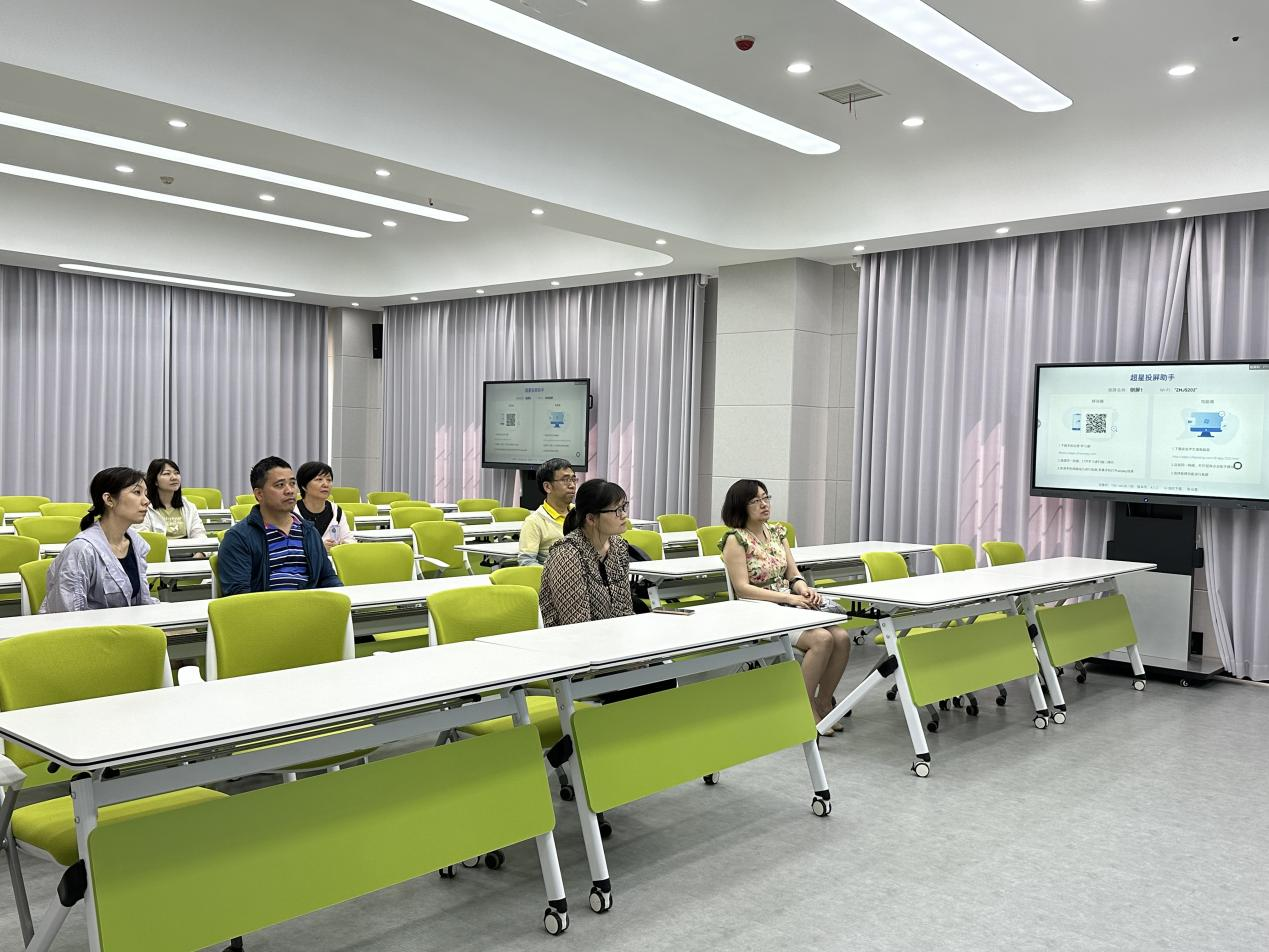 再次,讲解员带领各位老师参观体验了不同类型的智慧教室。按照教学实际要求的不同,智慧教室可基于全自动录播、远程直播互动、智慧课堂、多屏互动、智能管控、智能分析采集等多功能,融合直播课堂系统、智播课堂系统、教学质量与评价系统等,打造物理空间与网络空间一体化,虚拟教学环境与实体教学环境一体化的现代化、信息化教学、培训、会议环境。