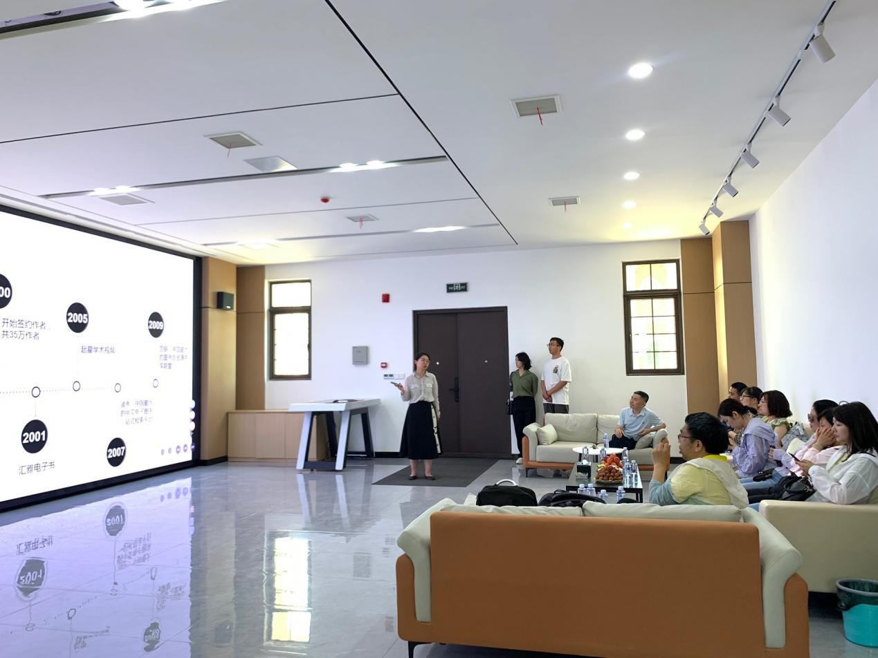 其次,讲解员介绍了超星数字教育的发展历史。自1993年成立以来一直专注于数字图书与在线教育,不断深耕、持续迭代。讲解员基于实时数据看板对超星针对教学信息化提供的包括通识教育、泛雅网络教学平台、一平三端智慧教学系统等专业的在线教育整体解决方案进行了详细的介绍。